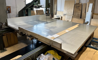 打ち抜き用の型をセットし、材料を載せてプレス加工を行う機械です。